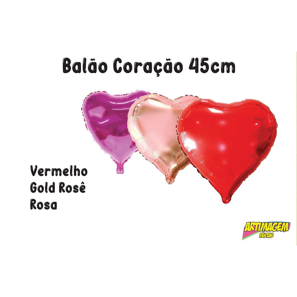 Artimagem Balão Coração Metalizado 45cm Vermelho Rosa ou Gold Rosê - 1 unidade